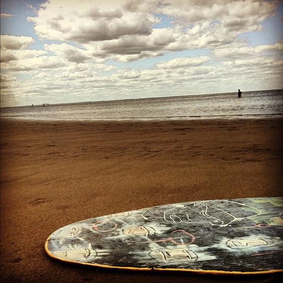 Seul photo de skimboard aujourd'hui, Val s'amusait avec des coques, un escargot pis une étoile de mer haha